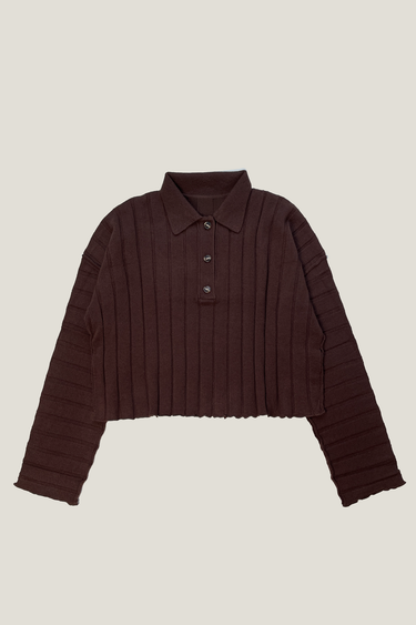 デザイン性のある大人なポロシャツ。ワイドリブが縦ラインをきれいに見せてくれるます。柔らかく滑らかな肌触りと、ドロップショルダーがつくる自然な抜け感が魅力です。ローウエストボトムと合わせてもお腹が見えないほどのクロップド丈が重ね着にも最適!切りっぱなし風のメローエッジがさりげない可愛さをプラスし、ゆとりある袖幅でリラックスした着心地を叶えます。春先まで長く着ていただけるオススメのトップスです!
