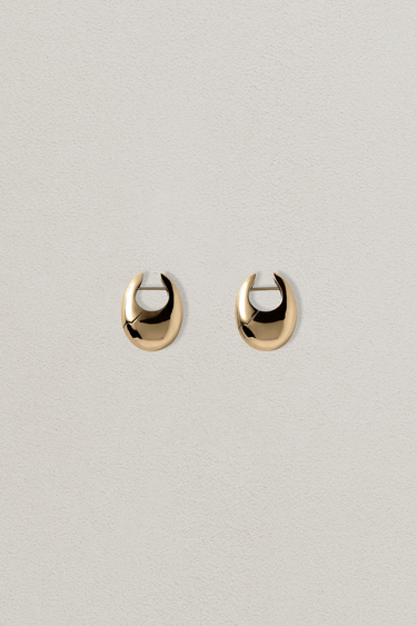 有機的なフォルムで滑らかに太さを増すヒンジフープピアス。ポスト部分(針)がフープよりも奥に位置し、耳に深めにかぶさりシンプルながらもこだわりのある逸品。ヒンジ部分を開いてポスト(針)を耳のピアスホールに通し、カチッと閉じるだけで装着完了。キャッチが不要で、しっかりロックされるため外れにくく、どの角度から見ても綺麗なデザインを楽しめます。