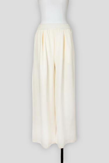 Wide pants with pleats at the waist and beautiful drape. Made of moderately thick fabric, the loose fit and stretchy material make for a stress-free fit. These bottoms are recommended for use in a wide range of situations, from casual to office wear, and can be worn all year round.