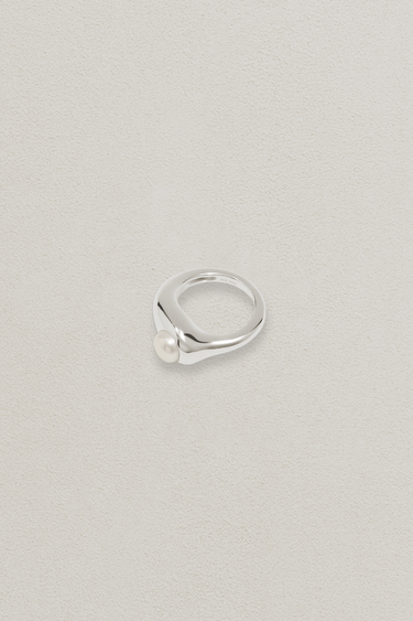 With its smooth silhouette, structured form and the soft luster of the pearl as an accent, this ring brings a dignified elegance to your fingertips just by wearing it.