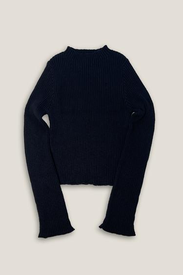 さわって欲しいほどの柔らかさと、適度な厚みのあるコットンリブで仕立てた心地よい一枚。リブの凹凸が、身体を締め付けない程よいゆとりをつくり、抜群のストレッチでストレスのない着心地です。モックネックがカジュアルすぎず、大人の抜け感を演出。長めの袖と切りっぱなし風のメーローエッジがコーデのポイントに。ローウエストボトムでも安心のレングスで、インナーを覗かせたレイヤードもおすすめです。