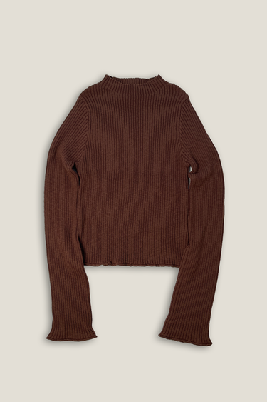 さわって欲しいほどの柔らかさと、適度な厚みのあるコットンリブで仕立てた心地よい一枚。リブの凹凸が、身体を締め付けない程よいゆとりをつくり、抜群のストレッチでストレスのない着心地です。モックネックがカジュアルすぎず、大人の抜け感を演出。長めの袖と切りっぱなし風のメーローエッジがコーデのポイントに。ローウエストボトムでも安心のレングスで、インナーを覗かせたレイヤードもおすすめです。