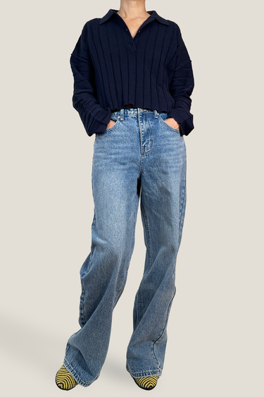 デザイン性のある大人なポロシャツ。ワイドリブが縦ラインをきれいに見せてくれるます。柔らかく滑らかな肌触りと、ドロップショルダーがつくる自然な抜け感が魅力です。ローウエストボトムと合わせてもお腹が見えないほどのクロップド丈が重ね着にも最適!切りっぱなし風のメローエッジがさりげない可愛さをプラスし、ゆとりある袖幅でリラックスした着心地を叶えます。春先まで長く着ていただけるオススメのトップスです!